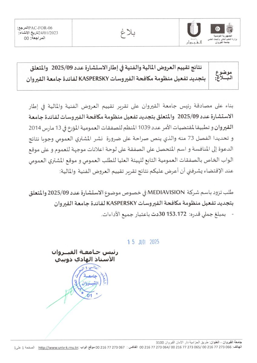Résultat de la Consultation N°09/2025