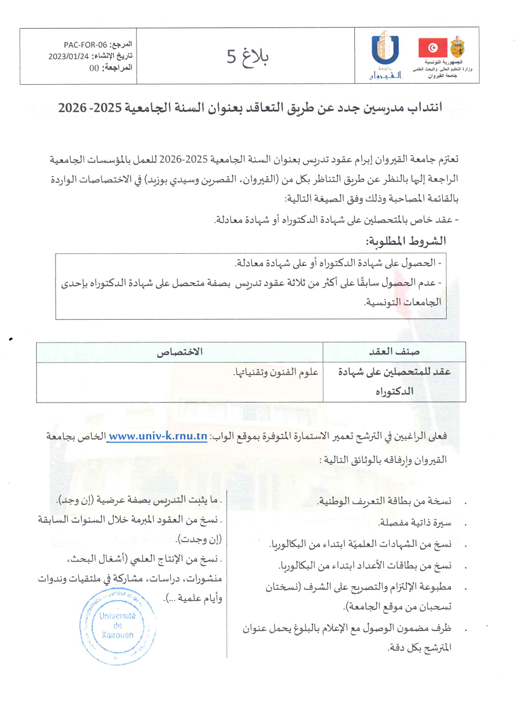 Recrutement de nouveaux enseignants contractuels pour l'année universitaire 2025-2026