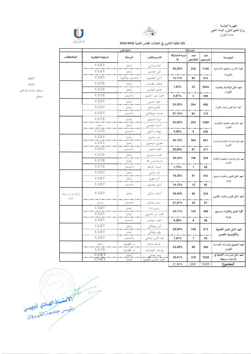 مترشح وحيد عن مرحلة الإجازة |